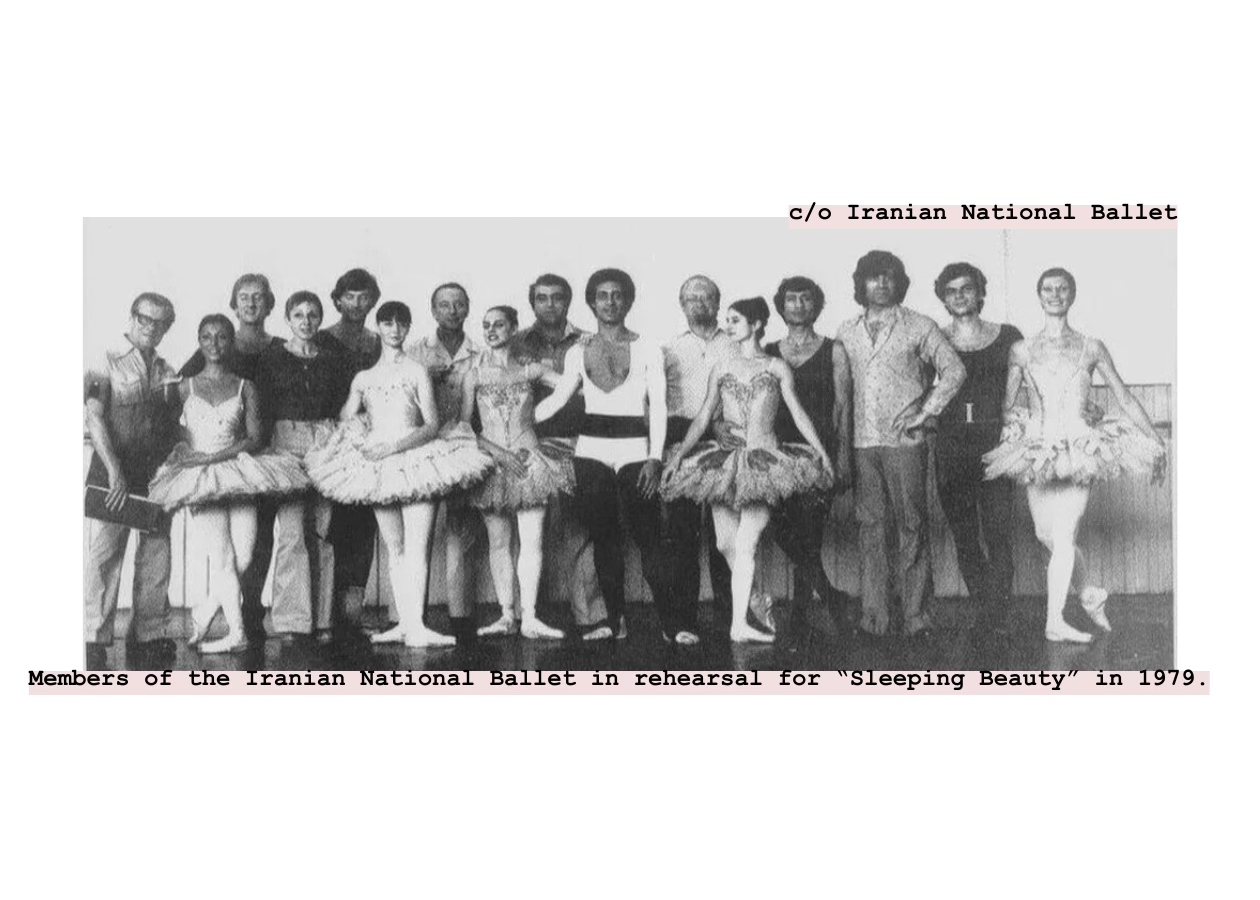 Tara Ghassemieh told me this between bites of orange, calling in from her home in Irvine, California. I had followed her work for years; being Iranian American and a ballet dancer, her original production, The White Feather: An Iranian Ballet Tale, had caught my attention back in 2022. Ghassemieh is one of few Persian8 dancers in the ballet world, and has repeatedly spoken out about ballet—and dance generally—being illegal in the Islamic Republic of Iran (IRI). “The Iranian National Ballet was the biggest ballet company in the Middle East for 20 years,” she shared with me, allowing her red nails to lead her explanation. “[It was] just being established when the regime came in and eradicated it.”
