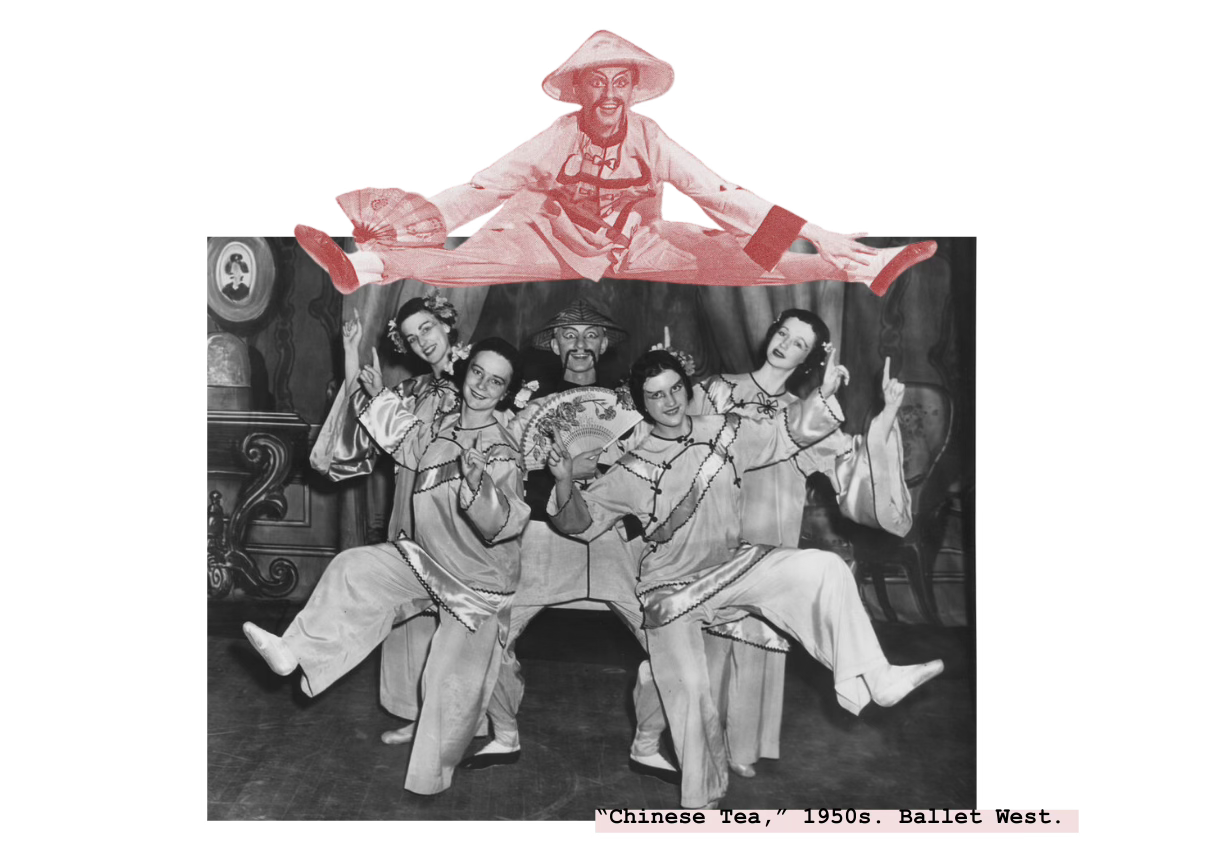 “I had my epiphany moment on stage... because I had a geisha wig with a Chinese ceremonial gown, and then the man was stuffed in a tea box, and then you had the porcelain fingers,5” Pazcoguin told me, remembering her first time performing Balanchine’s Nutcracker. “It was so many things, [so many] different facets of Asianness—and it wasn’t even specific.” Despite her having a Filipino background, therefore being a woman of Asian descent, Pazcoguin felt forced to embody something she wasn’t. Something no Asian person could be, regardless of their country of origin: Chinese Tea was a wonky mishmash of East Asian cultures, made for a 19th-century, European audience. Pazcoguin was being forced into the narrative of Orientalism.