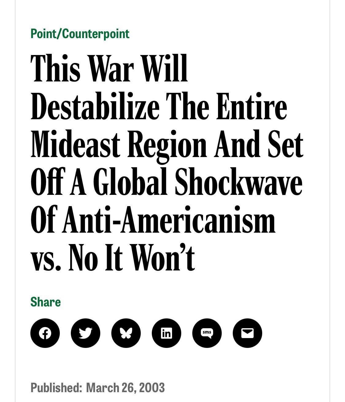 When I see the headlines about war with Iran, I hear Anderson Cooper, Wolf Blitzer, and Larry King echo in my head. It’s never their current iterations; it’s always their 2002 cadences.