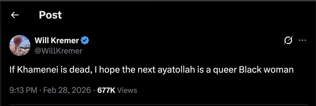 I do not believe little girls should be collateral to the dream of regime change, just as I do not believe between 7,000 and 30,000 protesters should be mass-murdered by the IRGC. I know that the main, public target of this bombing campaign was killed. And to me, Ayatollah Khamenei is far from a martyr. I shared the vicious excitement of my fellow Iranians when seeing reports of the Ayatollah dead. Knowing he’ll answer for what he’s done to the Iranian people brings clarity to my writing and spirit. But a war led by the United States and Israel won’t end here, even if they want it to. The texts and the memes and the videos and the cheers for Khamenei’s ending sit uncomfortably next to the grief of another borderless war. How to balance the grief for families, children, and the oncoming realities of war for women, land and region... with the joy of a dictator dead?
